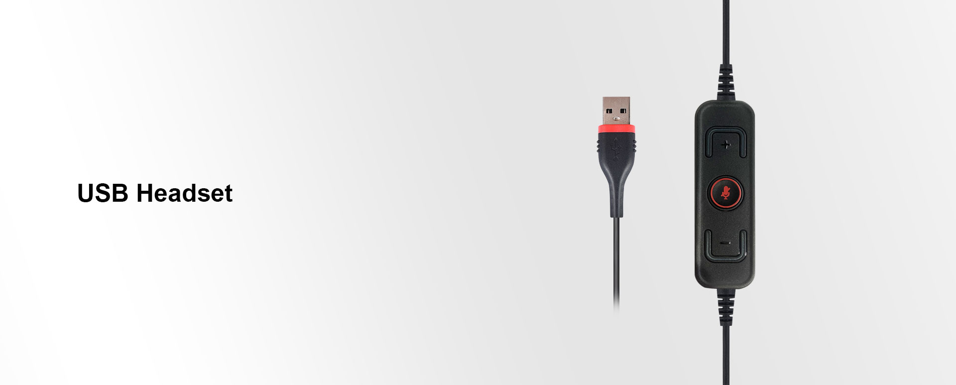 NT002U Profesjonelt USB-hodesett med to ørepropper og rød signaturkabel